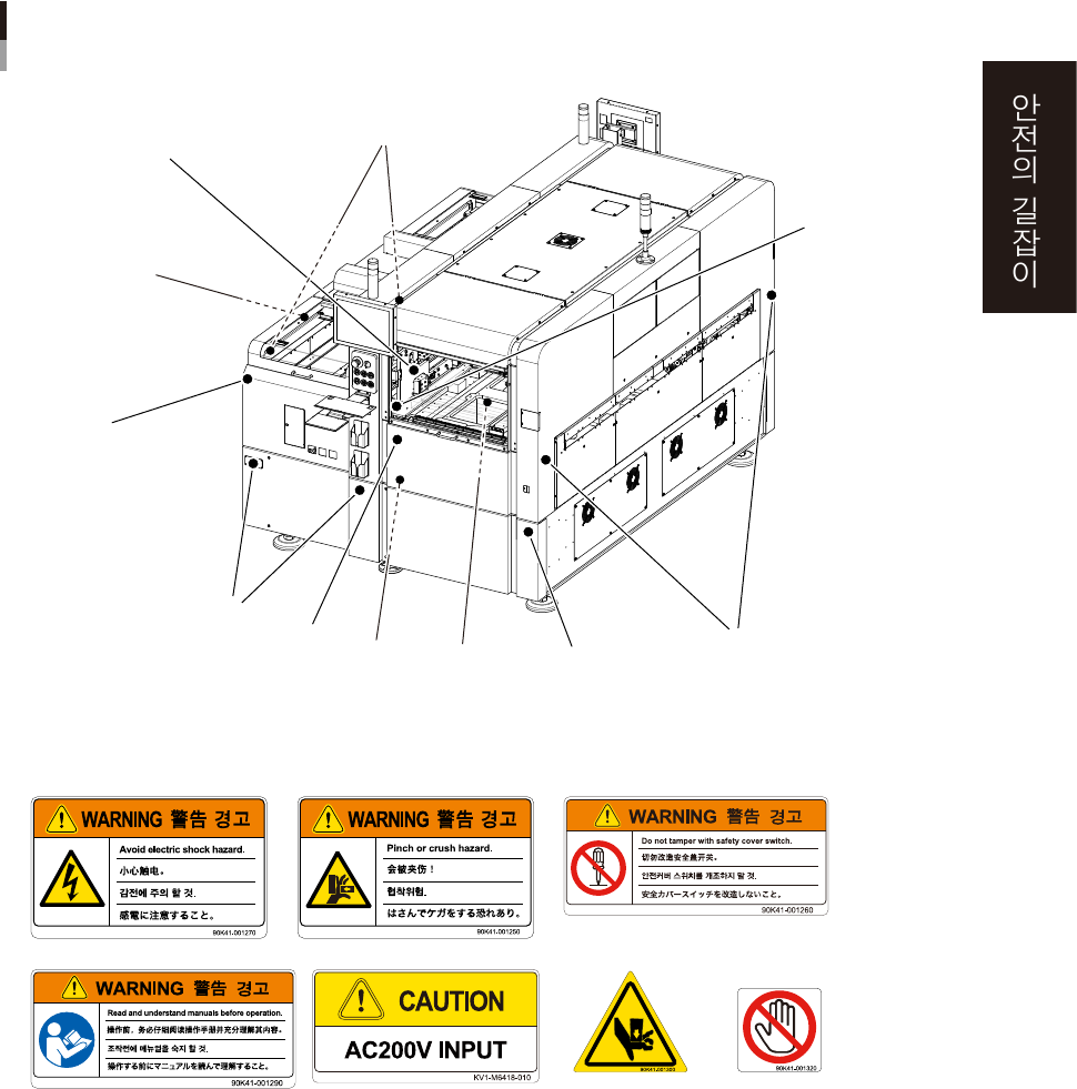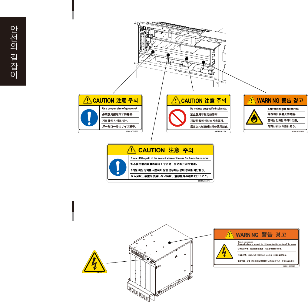 장비를 정확하고 안전하게 사용하기 위해서, 본체 각부에는 경고표시 라벨이 부착되어 있습니다.