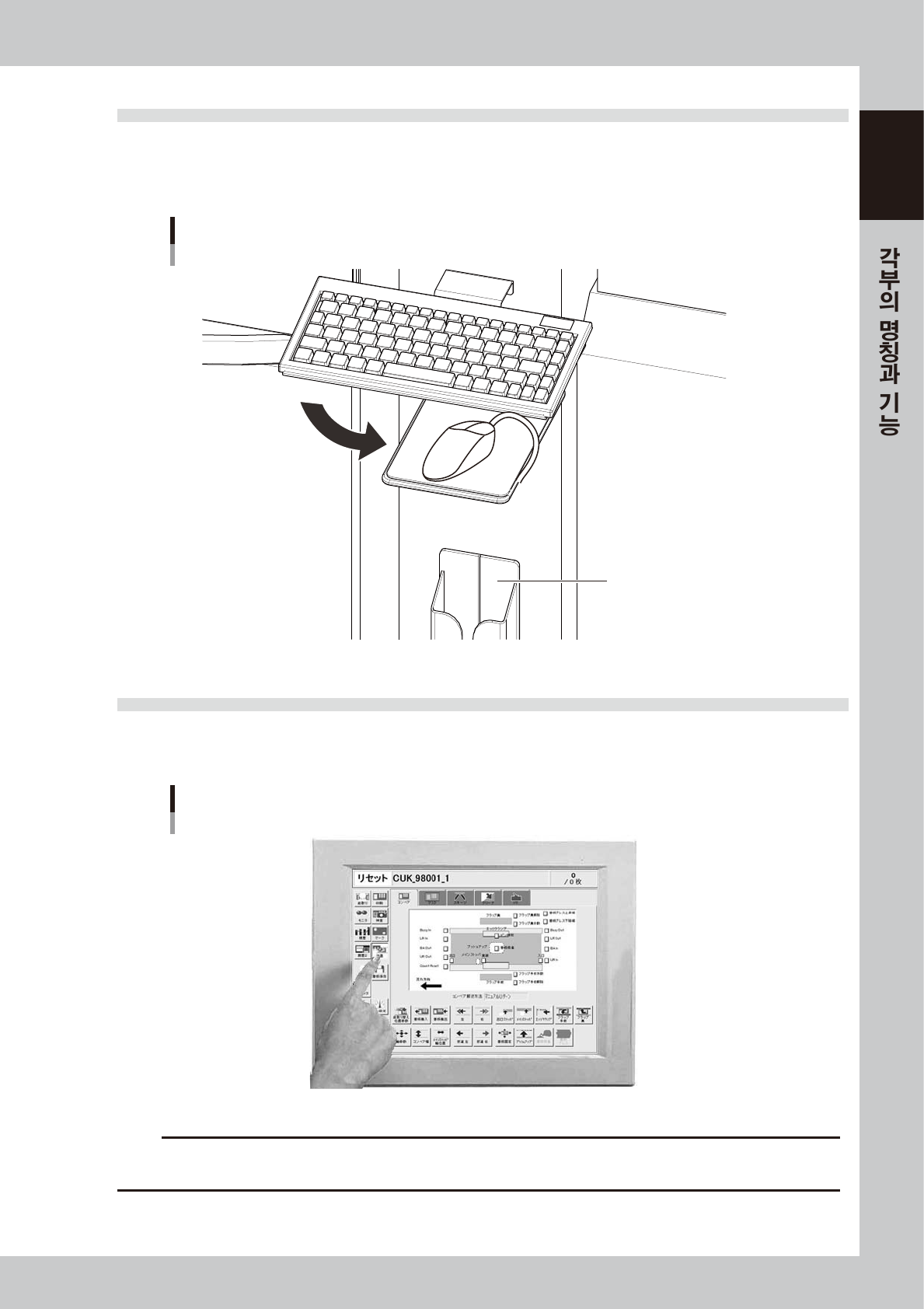 옵션인 액정 터치패널을 겸비하고 있는 장비에서는 , 키보드와 마우스를 사용하지 않고 , 터치 패널상의 아이
