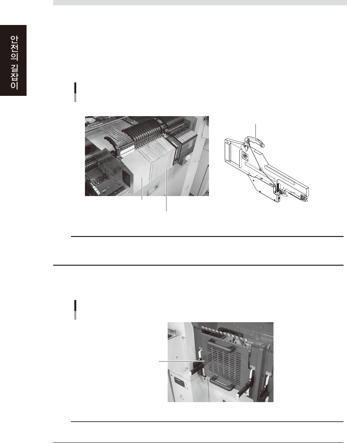 일괄교환 대차 사양의 장비에서 대차를 사용하지 않을 경우에 대차 세팅부에 끼워서 손의 진입을 방지합니다 .