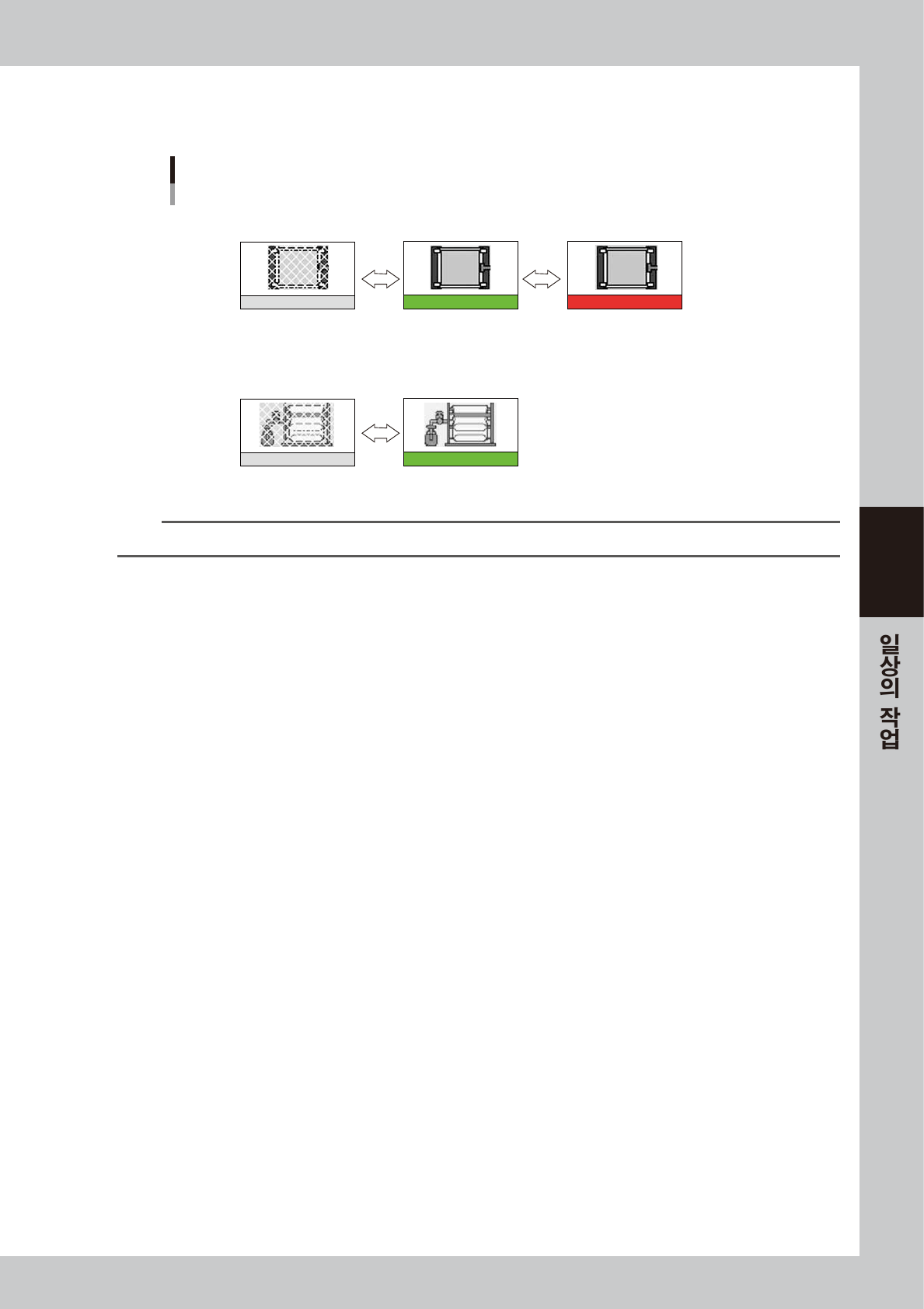 현재 부자재의 장착상태를 표시합니다 . 에러가 발생한 부자재는 색이 바껴서 표시됩니다 .