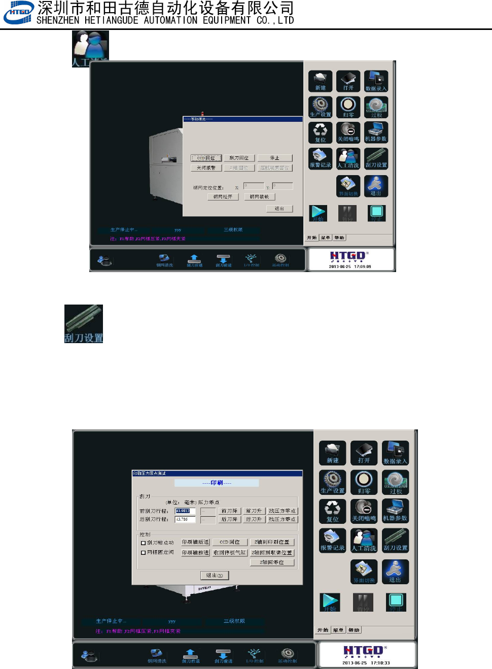 12: :刮刀设置按钮。单击该按钮后如图 4-13,在此界面可设置前后刮刀压