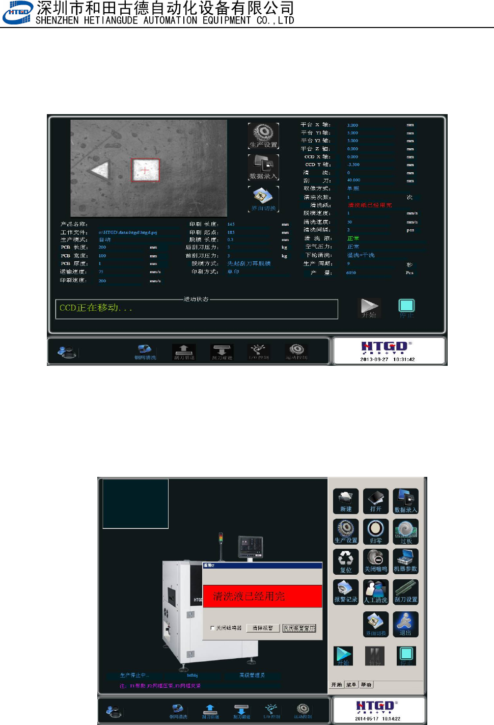 该对话框出现时,三色灯会变成红色,蜂鸣器会呜呜作响,同时机器停止运转。提示清洗
