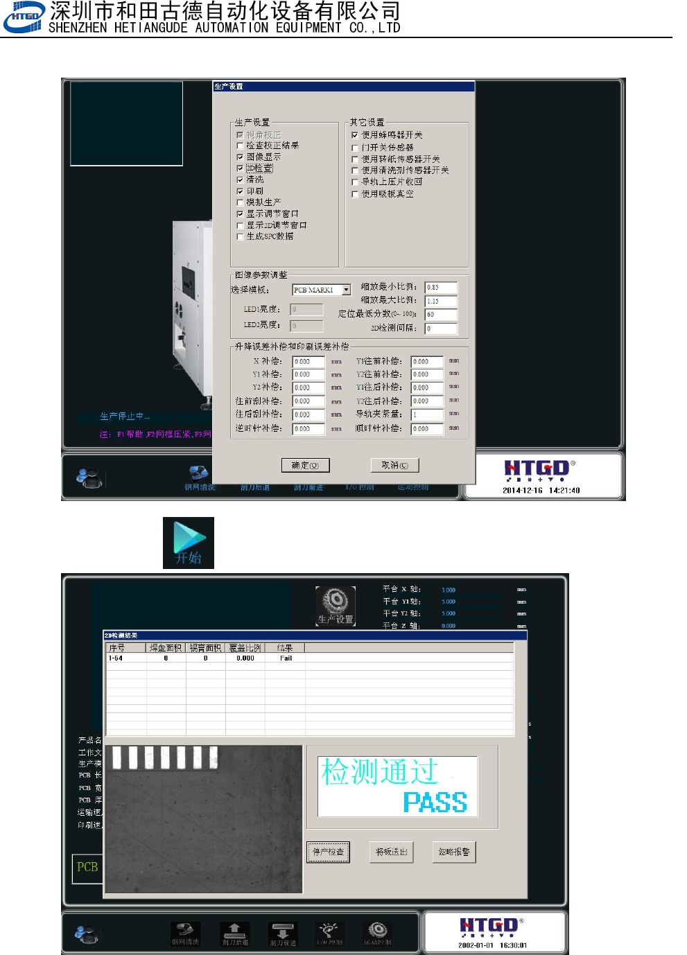12 点击开始按钮 进入生产状态。印刷完成后,显示检测界面。