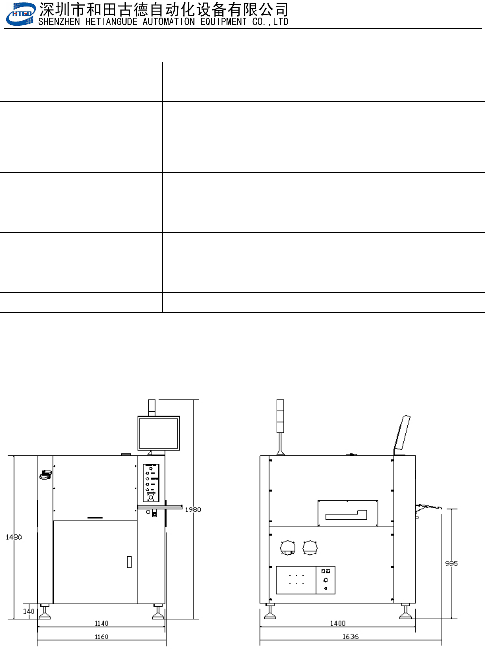 设备尺寸 1140mm(长) x 1400mm(宽) x 1480mm(高)(不包括显示器及三色灯高度)