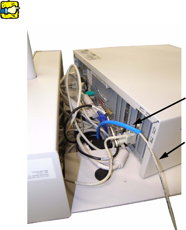 : Move the station computer so that the cable feedthrough is viewable.