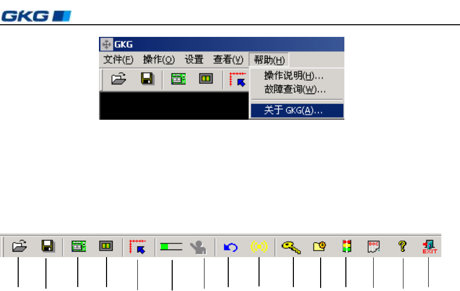 单击主菜单中[帮助],出 现 下 拉 菜单,可对本机器的[操作说明],[故障查询]及公司简介[关