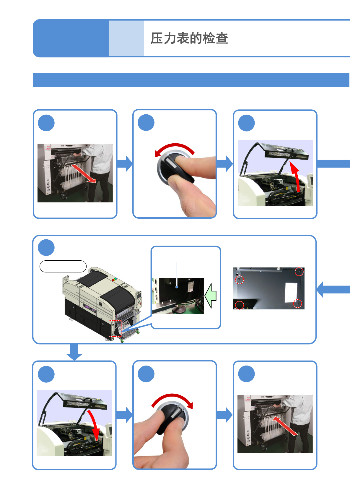 ●清扫吹气压、选购件用气压、真空破坏压在规定值以外时,请调整。