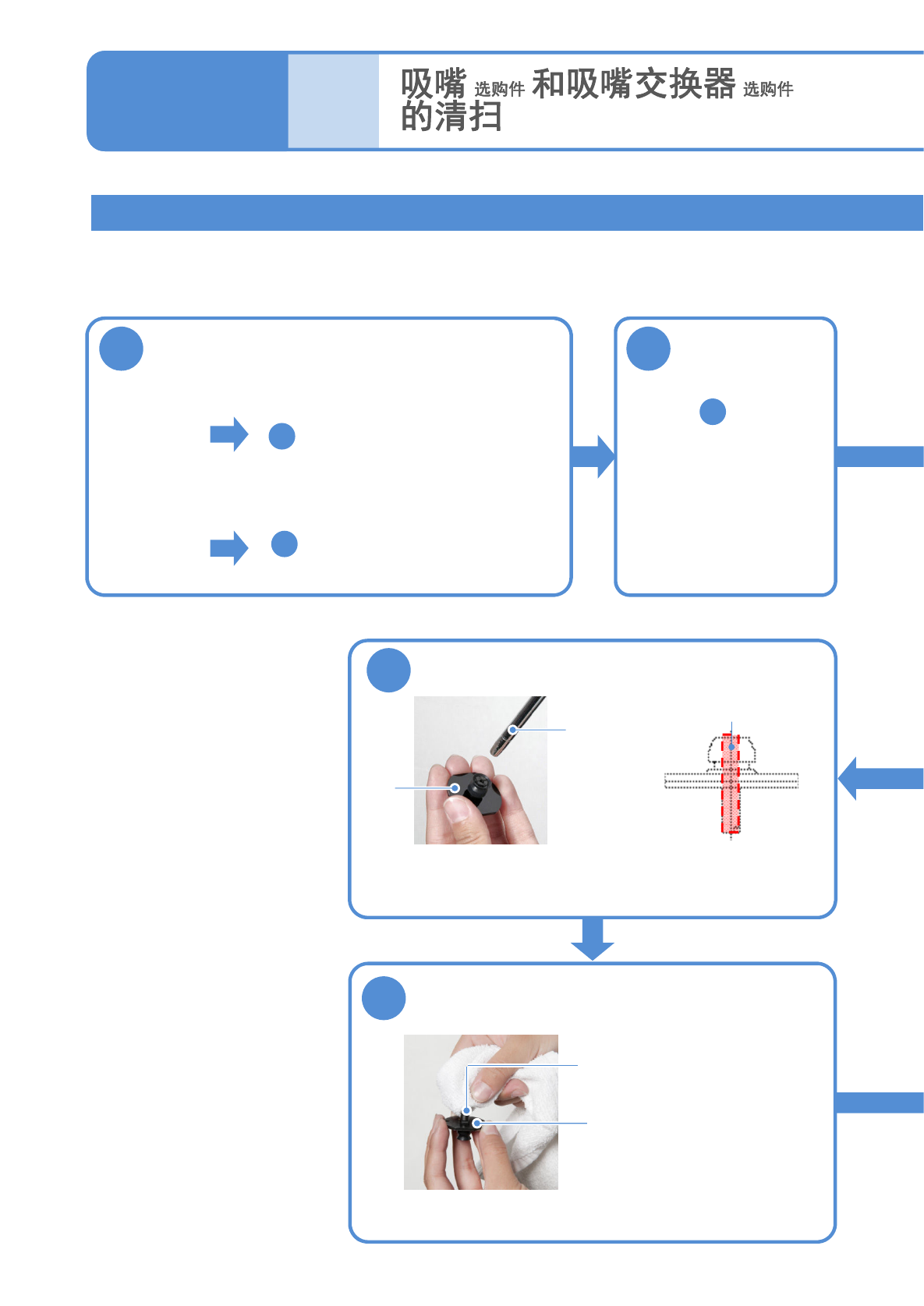 使用棉纱布擦拭吸嘴锥形面和吸嘴凸缘上面