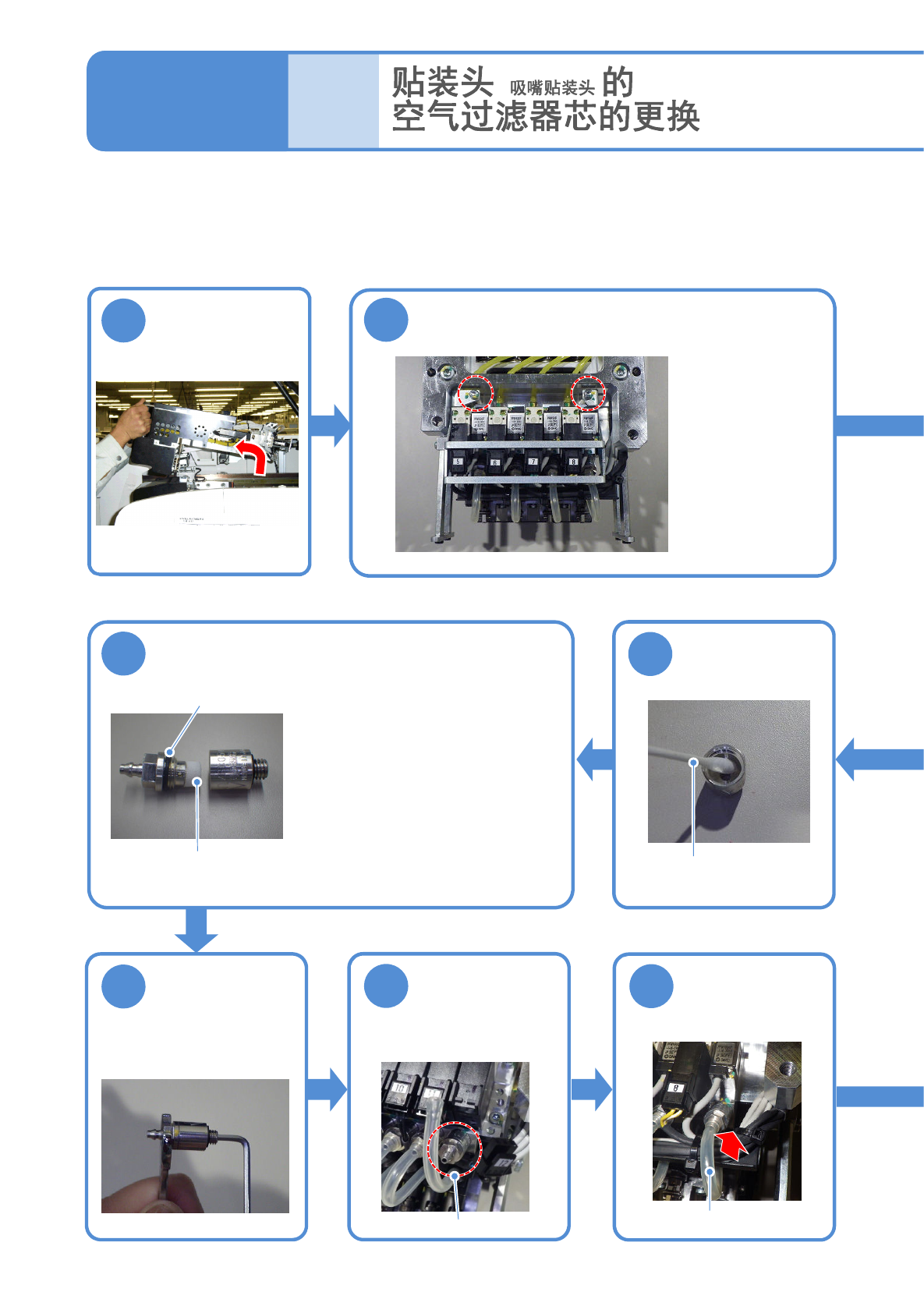 在这里,对贴装头 (8吸嘴贴装头) 的空气过滤器芯的更换方法进行说明。