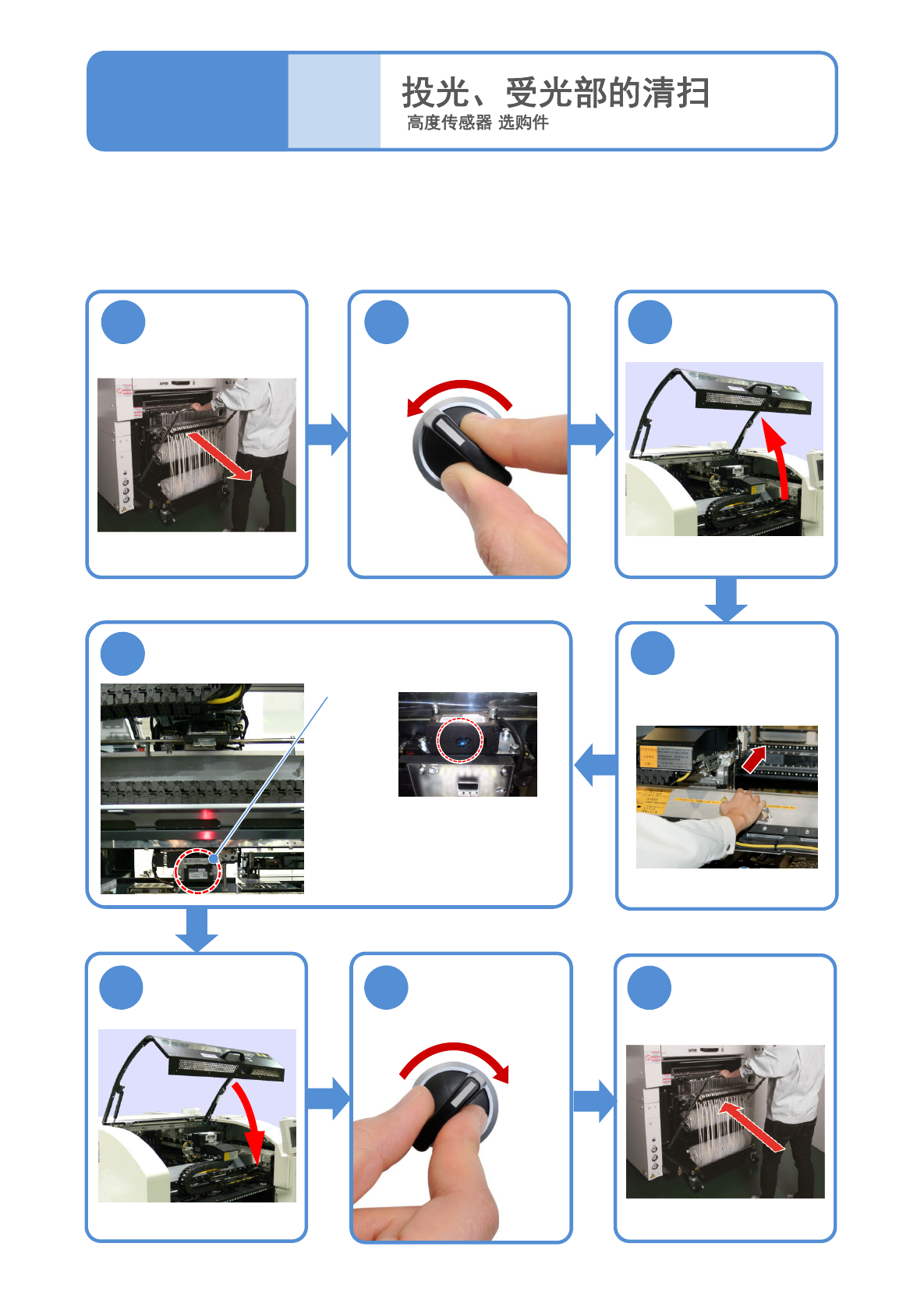 对高度传感器(选购件)的投光、受光部的清扫进行说明。