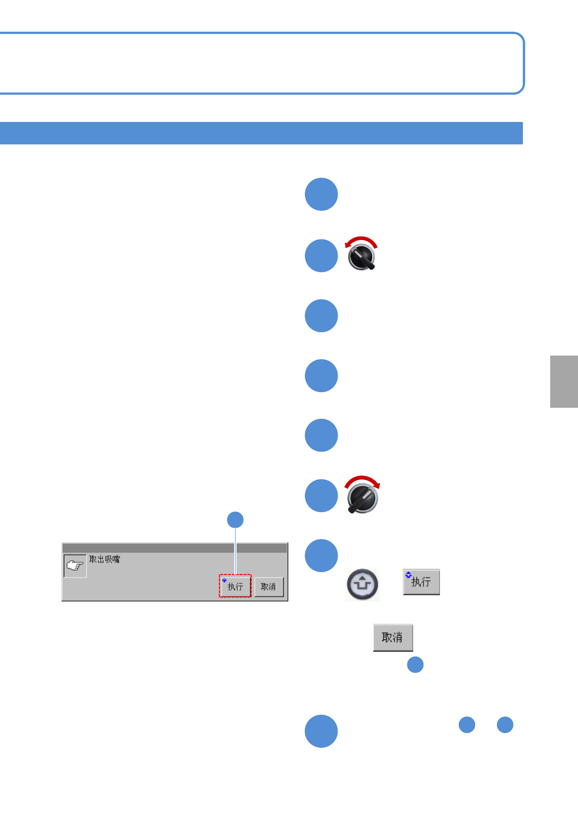 NPM-W2 EJM7DC-MB-13M-02 打开安全盖 卸下吸嘴 关闭安全盖 13-4 -6 准备取出吸嘴 确认提示 ■取消时 ( 仍然是 的画面 ) 22 ṗ 伺服开关置于 OFF 伺服开关置于 ON 30 25 26 27 28 29 24 30 2 3 0 31 在其他工作台,重复 ~ 的操作。 +