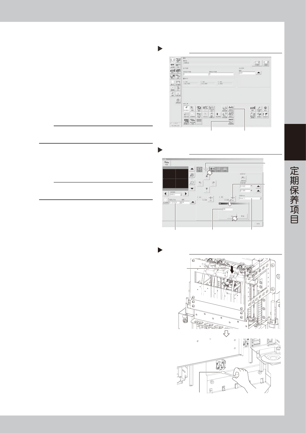 3-64 3 5 再使贴装头向相反方向旋转 90 度。 1. 关闭正面安全机盖,解除贴片机的紧急停机状 态。使用一次性换料车的机型,需将料车装回 贴片机。 2. 按照前述 Step3 的方法,输入“-90”使贴装头 向相反方向旋转 90 度。 e 3. 按急停按钮,打开贴片机的正面安全机盖。 4. 使用一次性换料车的机型,为便于清洁需将料 车从贴片机上拆下。 6 清洁吸嘴轴前端部中还未擦拭到的部位。 按照前述 Step4 的方法,擦拭吸…