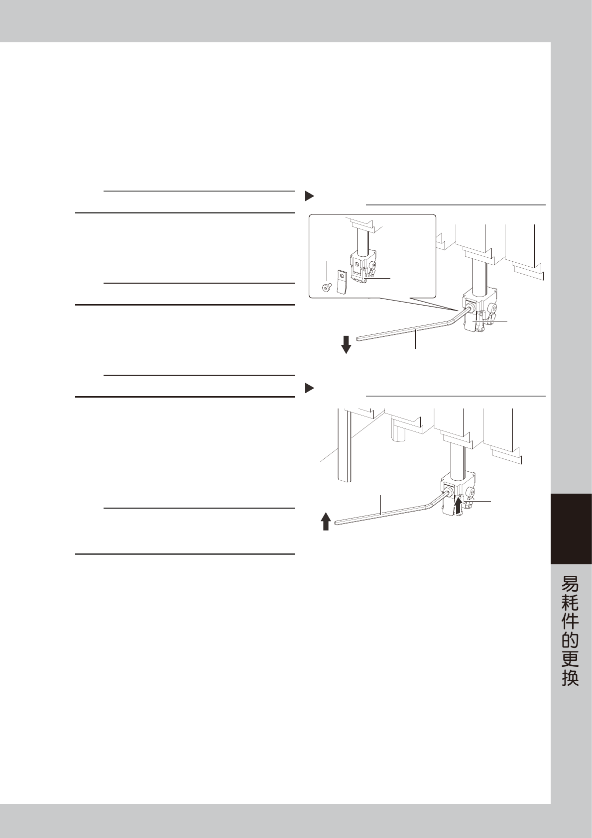 如右图所示,将滚轮轴插入吸嘴夹臂组件与新滚轮