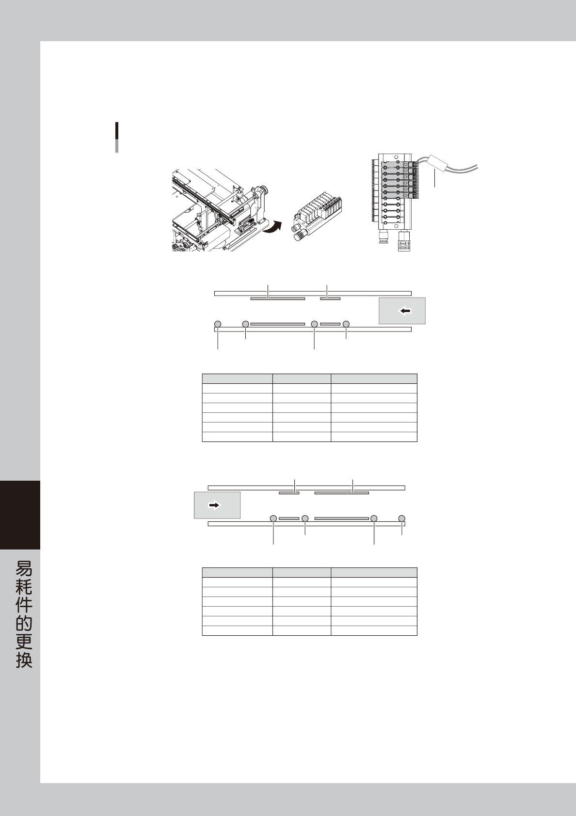 6-23 6 ■ YSM20WR 双轨机型时 双轨机型时,电磁阀组件安装在传送部的左右 ( 入口、出口 ) 两侧。 C V S T 2 标识管 CV ST1 CV ST2 CV ST3 CV ST5 CLAMP1 CLAMP3 CV ST6 CV ST7 CV ST8 CV ST10 CLAMP2 CLAMP4 电磁阀组件 电磁阀组件 电磁阀位置 右侧 右侧 右侧 右侧 右侧 右侧 左侧 左侧 左侧 左侧 左侧 左侧 传送部电磁阀的安装…