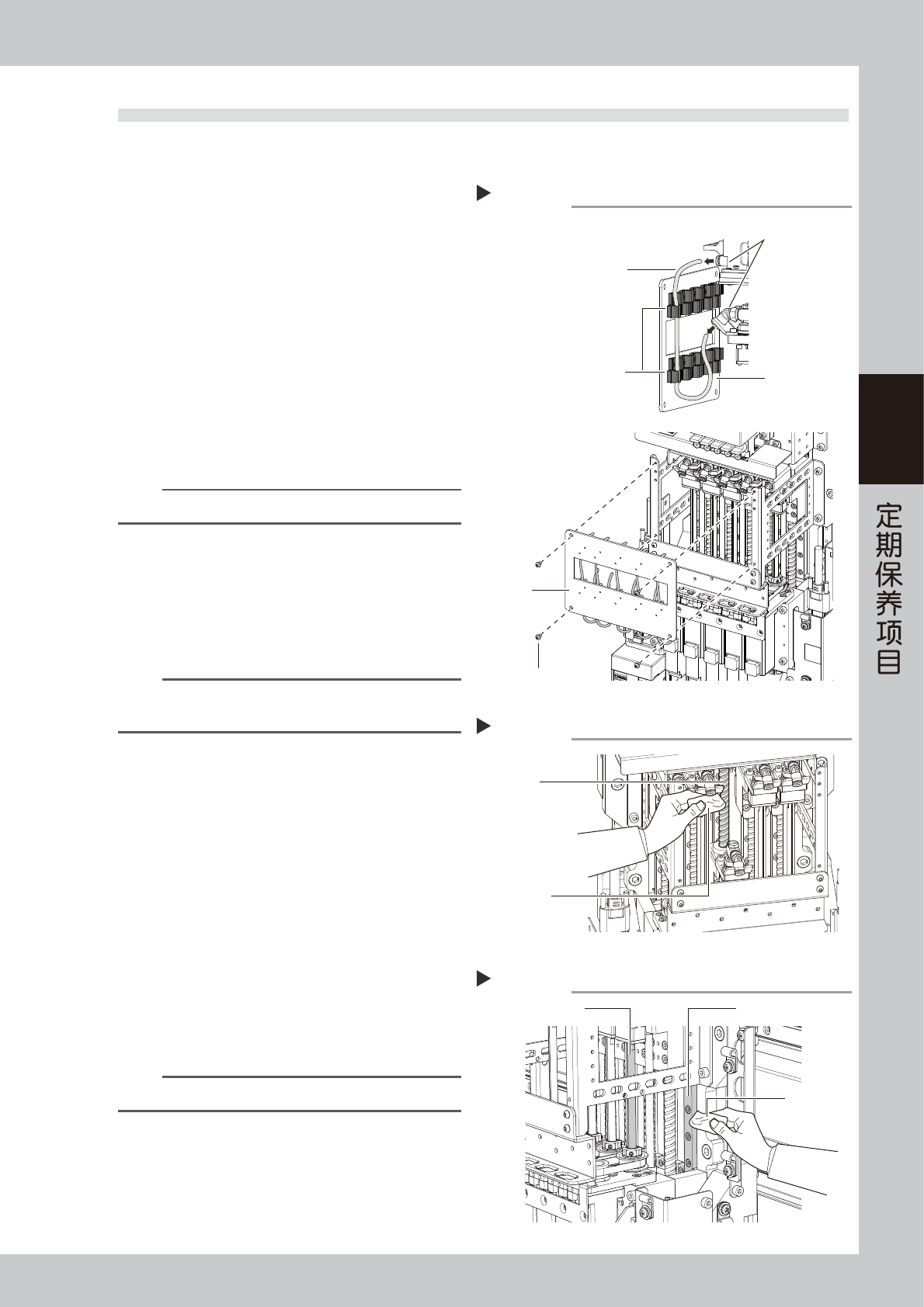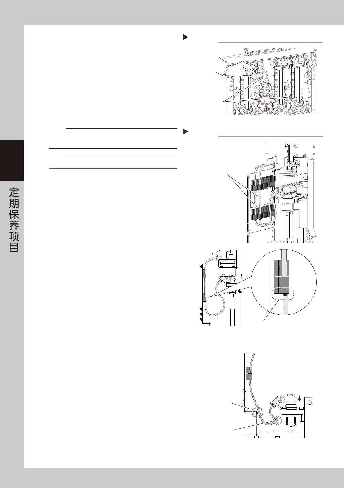 3-27 3 3.6 Z 轴滚珠丝杆等的清洁与加油 ( FM 贴装头 ) 一般,3 个月左右需对 FM 贴装头的滚珠丝杆、花键轴与导轨部进行 1 次清洁与加油。 下面,介绍清洁与加油的方法。 1 移动贴装头单元。 1. 将易受磁场影响的手表、ID 磁卡等随身物品全 部取出。 e 2. 按急停按钮,打开贴片机的正面安全机盖。 使用一次性换料车的机型,为便于操作,需将 料车从贴片机上拆下。 3. 将贴装头单元移到便于清洁 Z 轴各部的位置。…