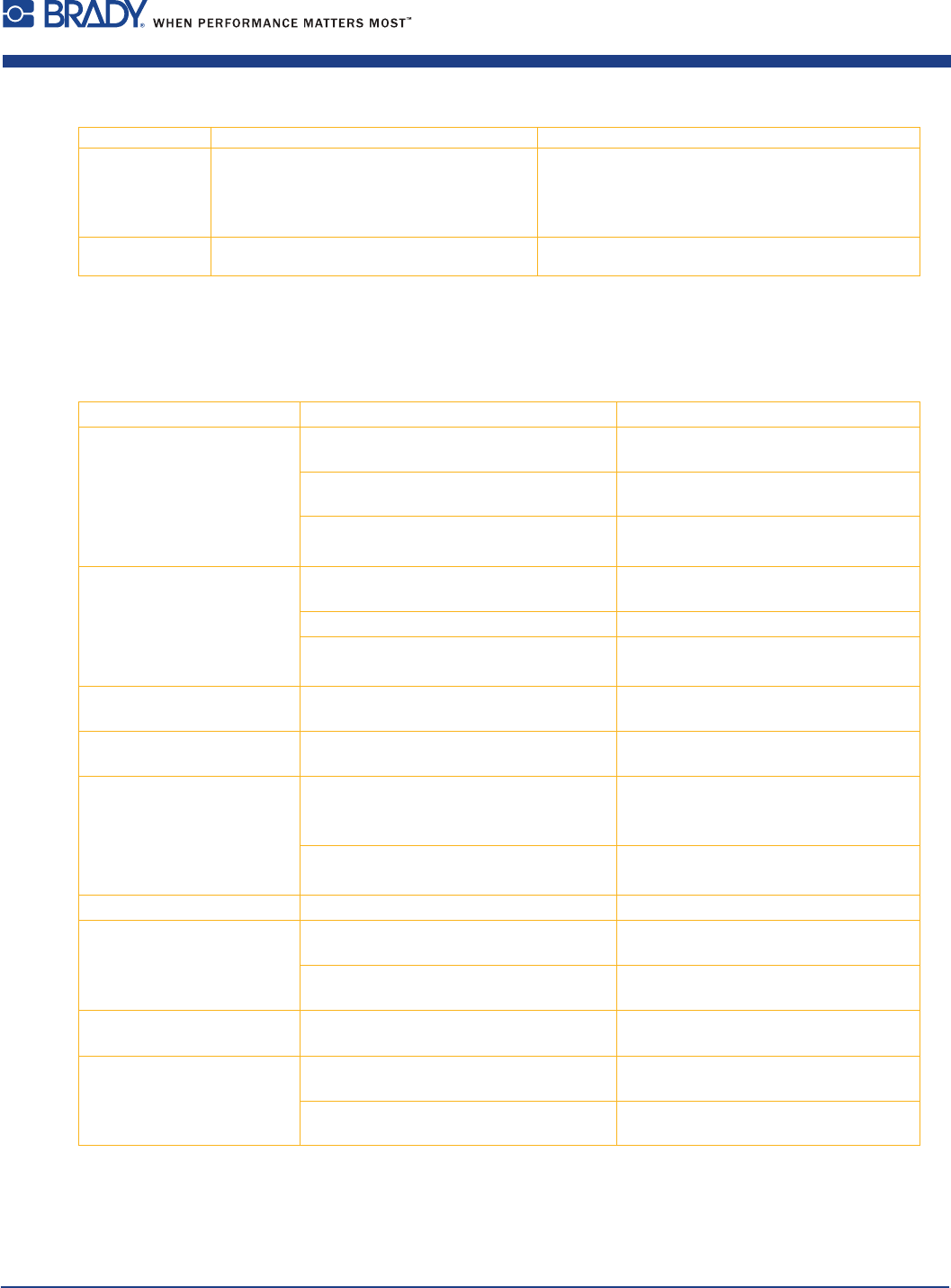 30 操作手冊 10 錯誤排除 錯誤訊息 原因 排除方法 語法錯誤 條碼打印機從電腦端接收未知或無效的指 令。 請按下 忽略 鍵跳過指令或 請按下 取消 鍵中斷打印工作。 未知儲存裝置 儲存裝置未格式化 不支援該儲存裝置類型 格式化儲存裝置或使用其他類型的儲存裝置。 表格6 錯誤訊息與排除 10.3 問題排除 問題 原因 排除方法 碳帶起皺折 碳帶張力軸未調整 調整碳帶 7.6,頁24 打印頭立柱壓力未調整…
