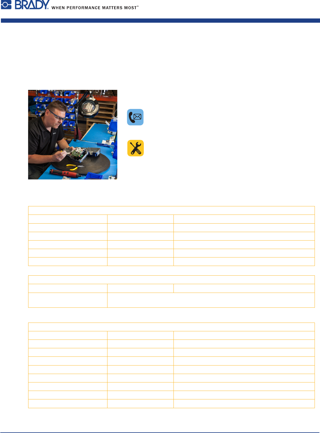 上的指導以及遍佈全球的維修服務等各種技術支援。Brady提供您免費或需要基本收費的不同等級技術支援。保固期、保