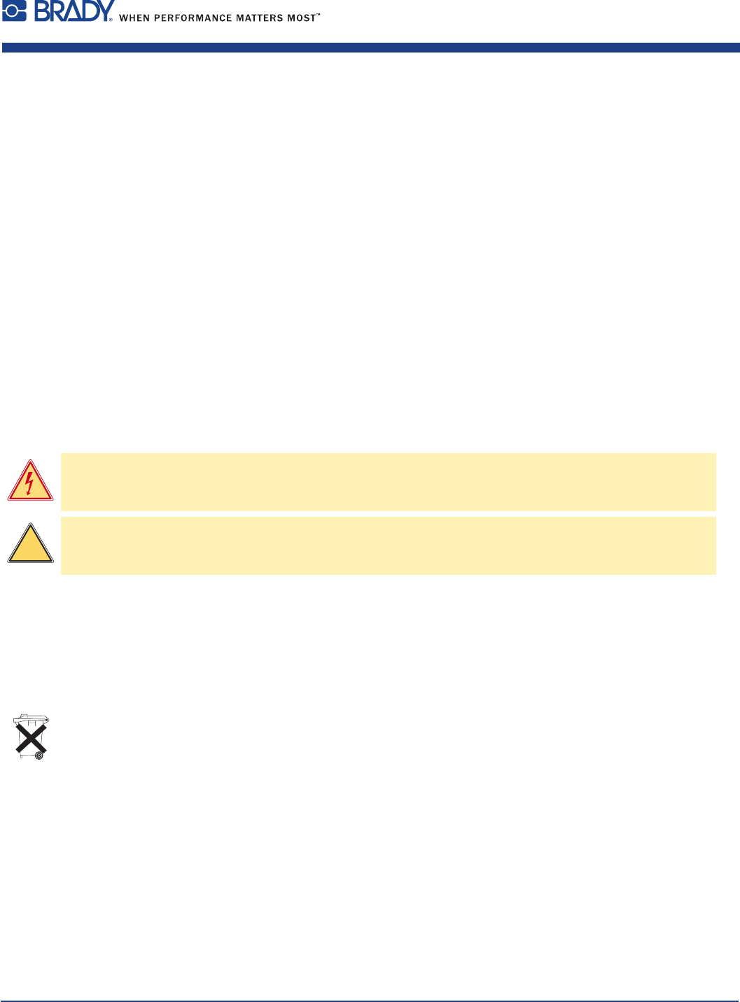 更多其他的作業只能經由Brady訓練的技師或Brady的技術人員進行操作。