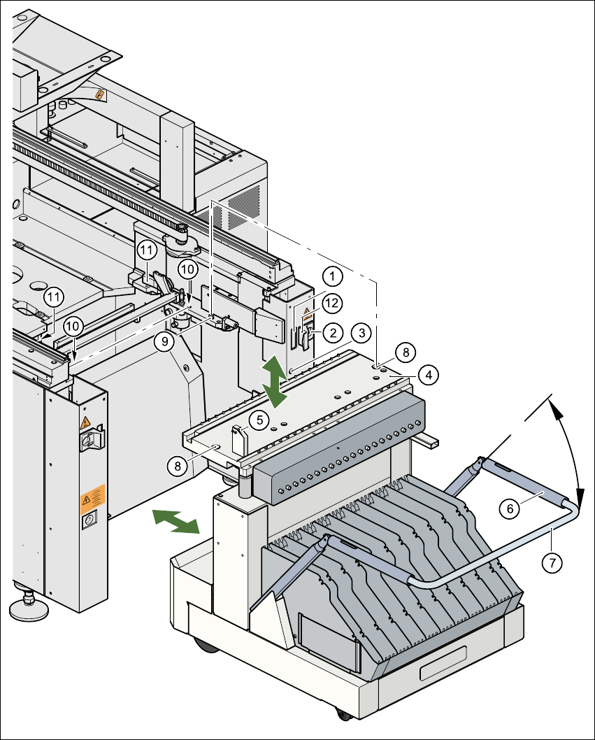 7) вверх. Тем самым Вы арретируете поднятую плиту столика компонентов в конечном