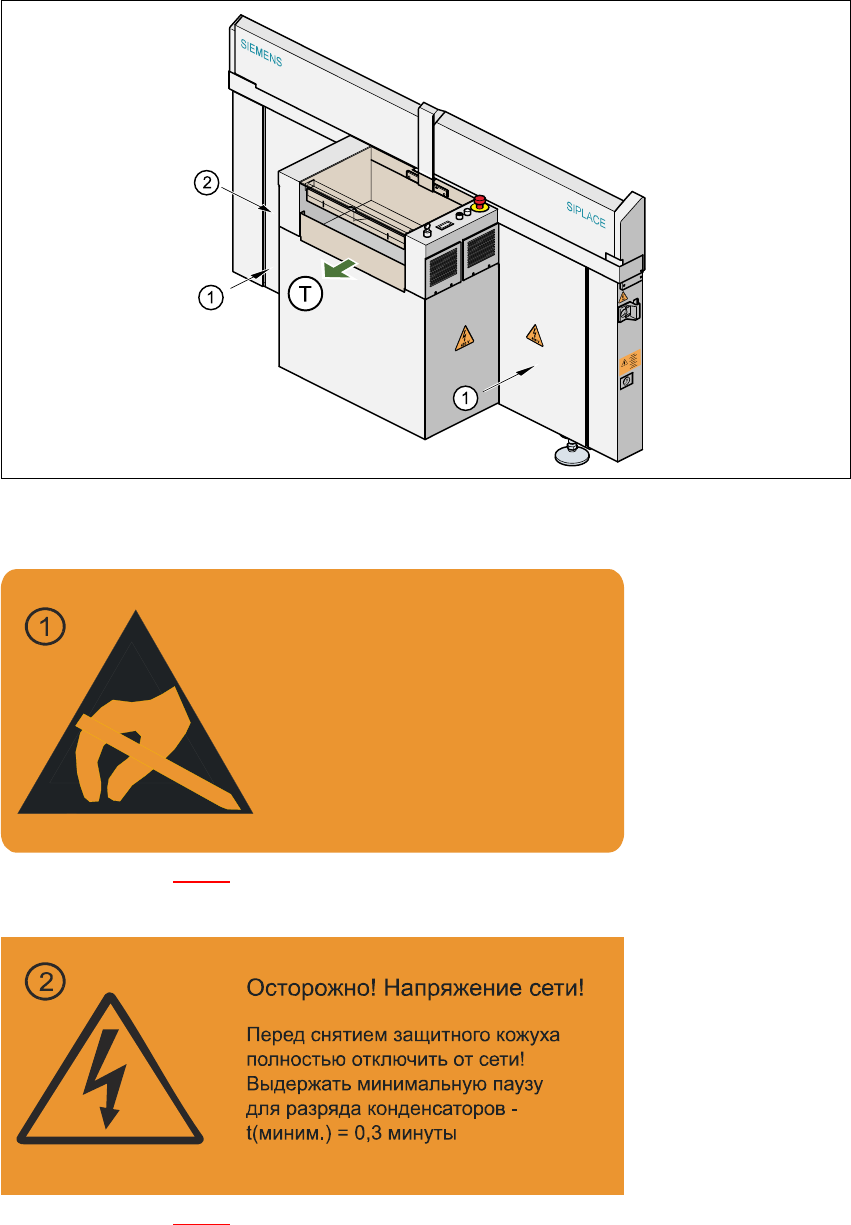 2 Производственная безопаснос ть Руководство по эксплуатации SIPLACE S- 25 HM 2.1 Указания по безоп асности ПО - в ерсия SR.503.xx Изд ание 04/2002 RU 60 Поз . 5 на ри с . 2.1 - 2 , стр . 58 " Пре дупре дите льные н…