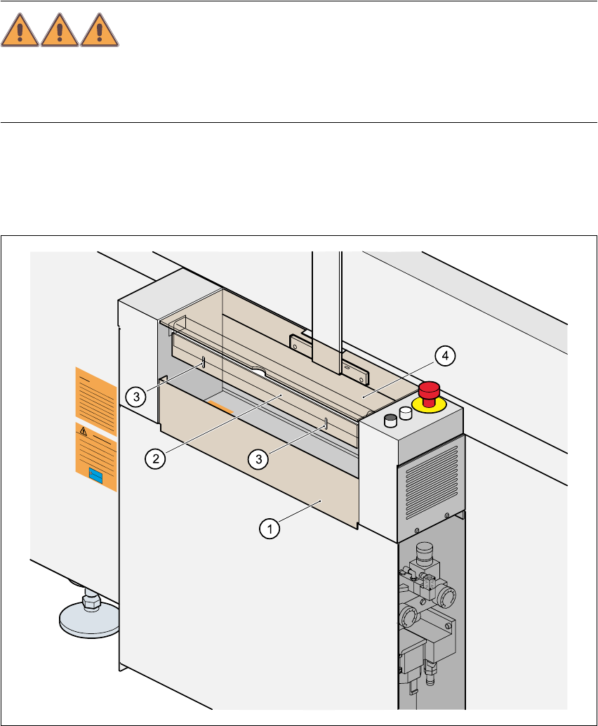 При открывании одного из защитных кожухов (см. поз. 9, 10, 11 или 12 на рис. 2.2 - 4), оси