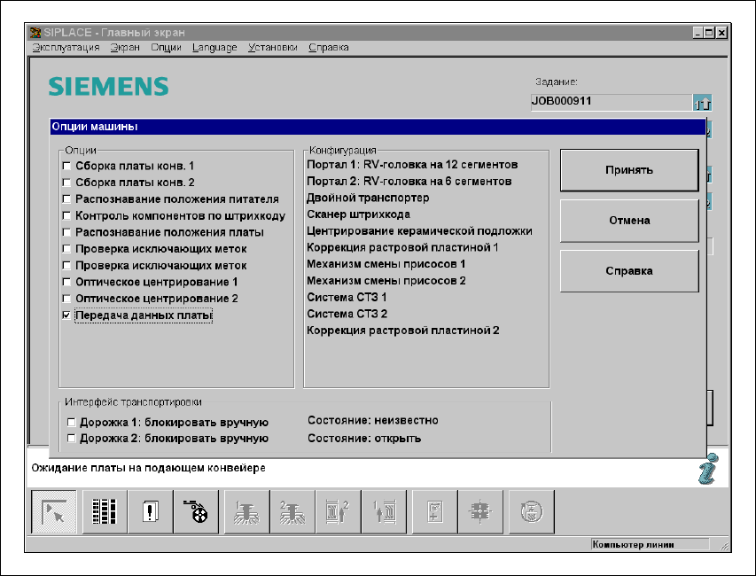 Окно "Опции машины" содержит функцию "Передача данных платы". Назначением этой