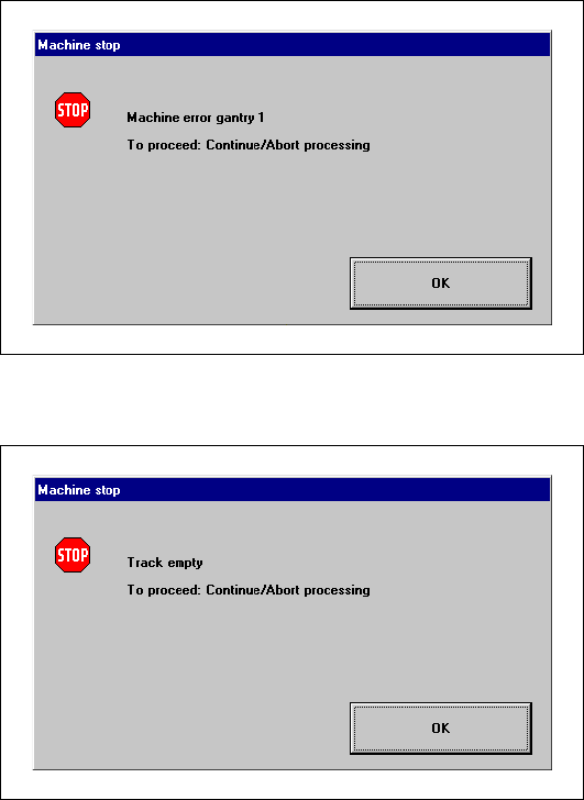 A message window will be overlaid if a track, machine or transport error occurs (see the following