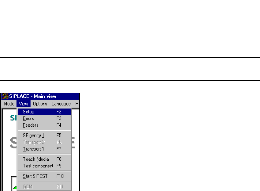 3 Introduction and basic concepts SIPLACE 80S-20/F4 User Manual 3.3 User interface - views and me nus Software version S R.407.xx 01/2001 US Edition 136 Setup F 2 3 The set up for a feeder location is di splayed in tabul…