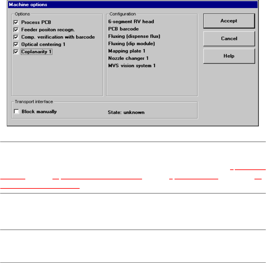 Only those machine options are displayed which are configured at the current station.