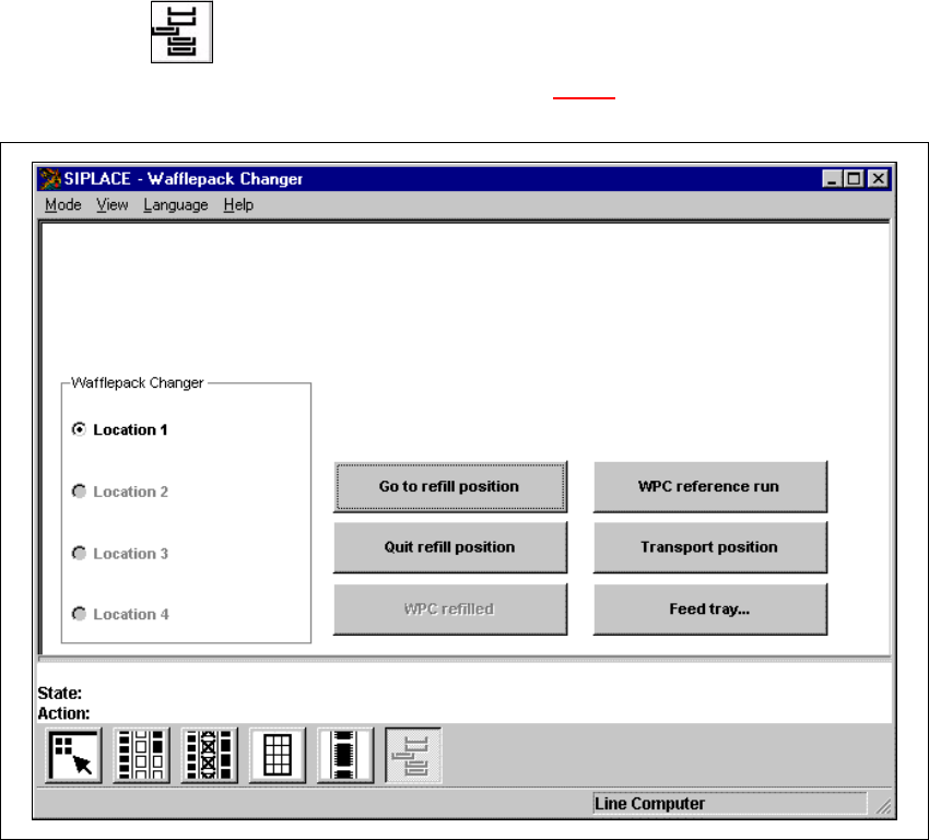 4 Placement functions SIPLACE 80S-20 /F4 User Manual 4.3 Feeders Soft ware version S R.407.xx 01/2001 US Edition 174 4.3.5 "W afflep ack Changer" view This view contains al l the fu nctions needed for refillin …