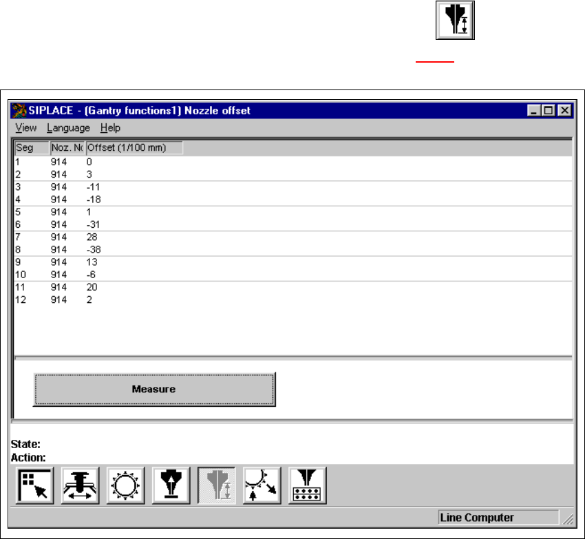 SIPLACE 80S -20/F4 User Manual 5 Single functions Software version SR.407.xx 01/2001 US Edition 5.2 Single functions, gantry 189 5.2. 5 "Nozzle offset " vie w 5 Å In the cu rrent vi ew for th e singl e funct io…