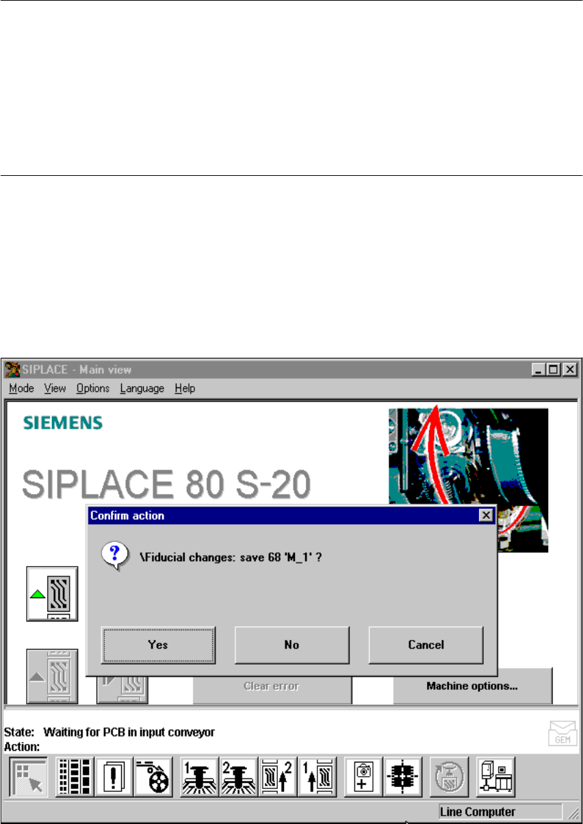 SIPLACE 80S -20/F4 User Manual 6 Vision functions Software version SR.407.xx 01/2001 US Edition 6.5 Teach Fiducial 247 6.5.3 Select Fiducial Menu When t he T each fiducial op tion is s elected in the Main view menu the f…