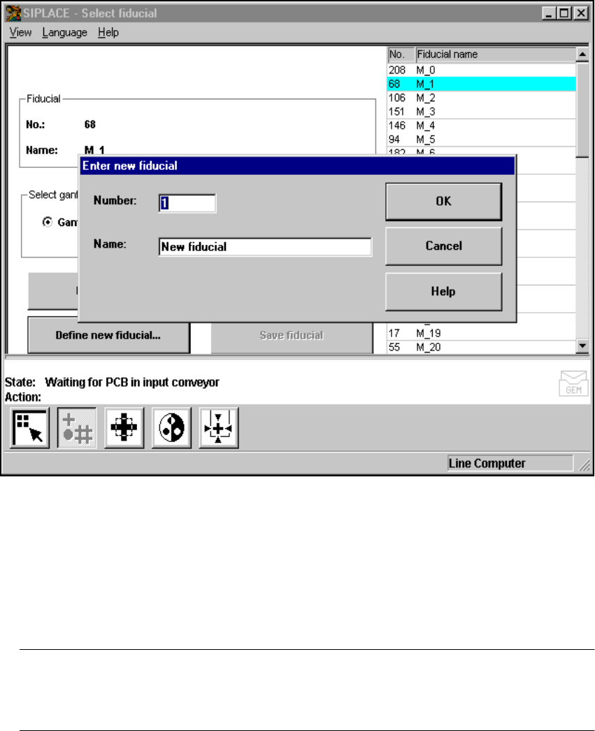 Fig. 6.5 - 11 Select fiducial menu, Define new fiducial option, input box