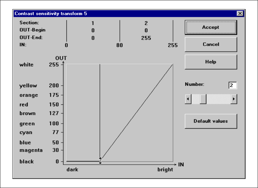 on Accept or Cancel. If you have not managed to obtain a satisfactory result, click on Default.