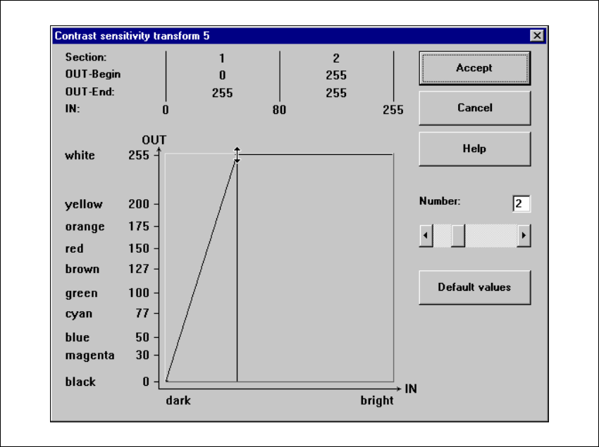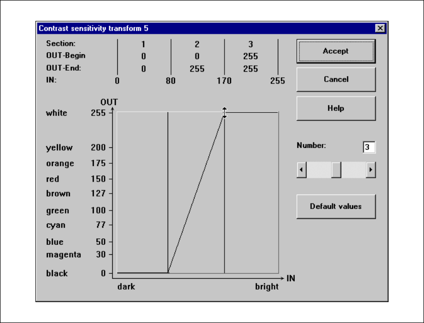 Fig. 6.5 - 22 Setting the contrast sensitivity to suppress defective structures and