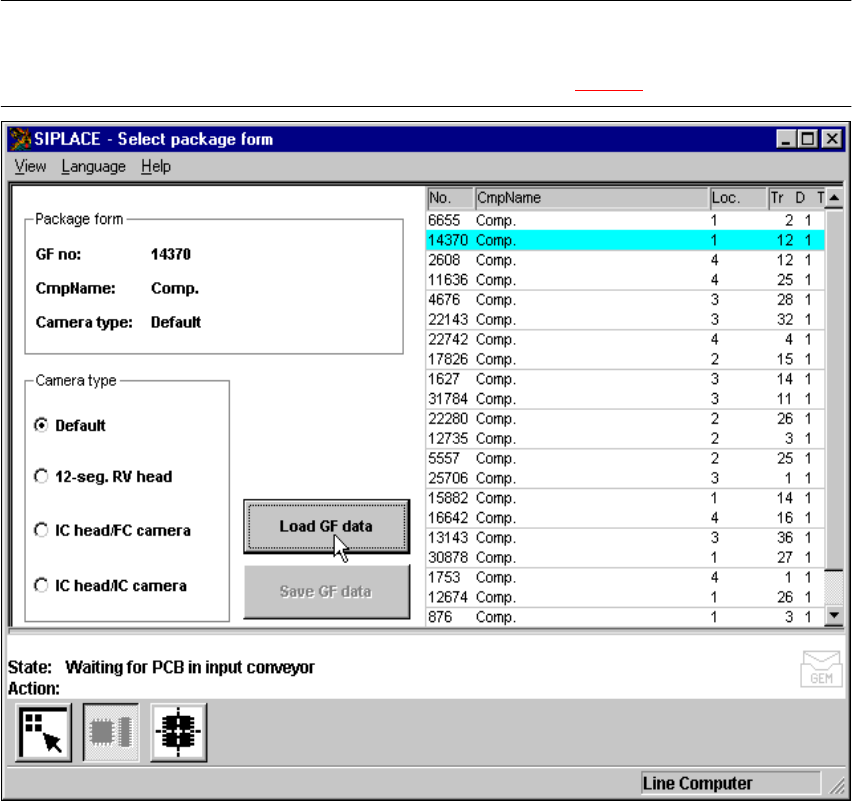 Å Click on the Load GF data button. In the Package form display field the package form and the