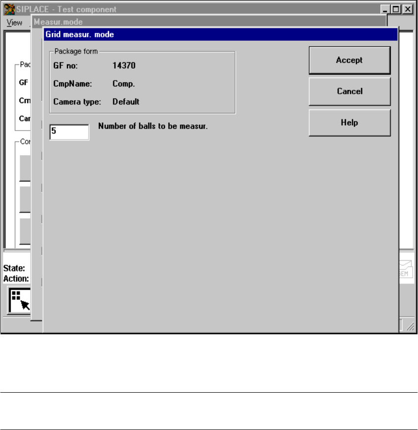 6 Vision functions SIPLA CE 80S-20/F4 User Manual 6.6 Test Co mponent Software version SR.407.xx 01/2001 US Edition 334 6.6.4.21 ’ Ball ’ measuring mode Click on the ’ Settings ’ but ton in ’ Ball ’ me asuring m ode to c…