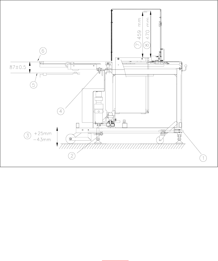 Å Check the dimension (87 ± 0.5 mm) between lower edge of tray and top of component table