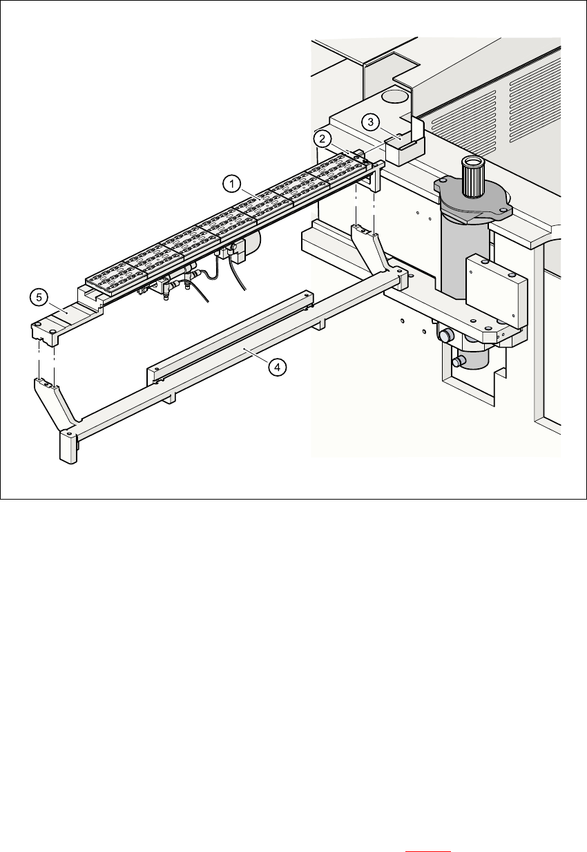 (3) Collecting bin for rejected nozzles (4) Nozzle changer, base unit
