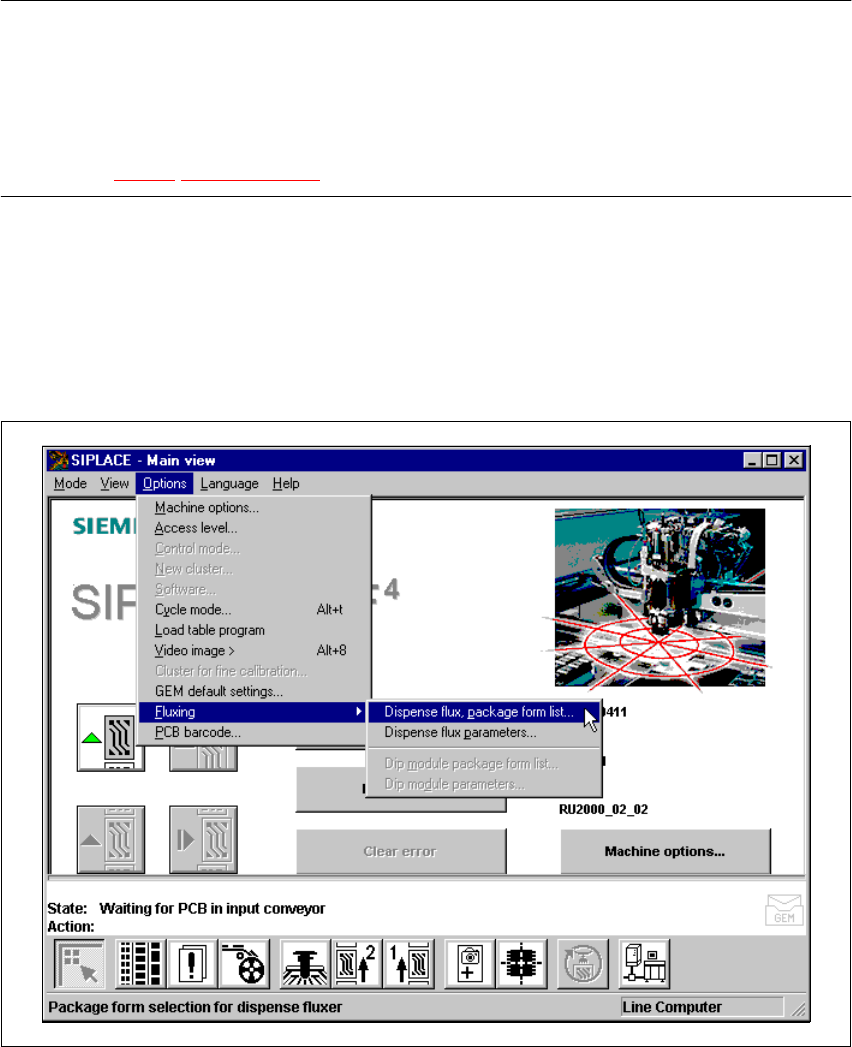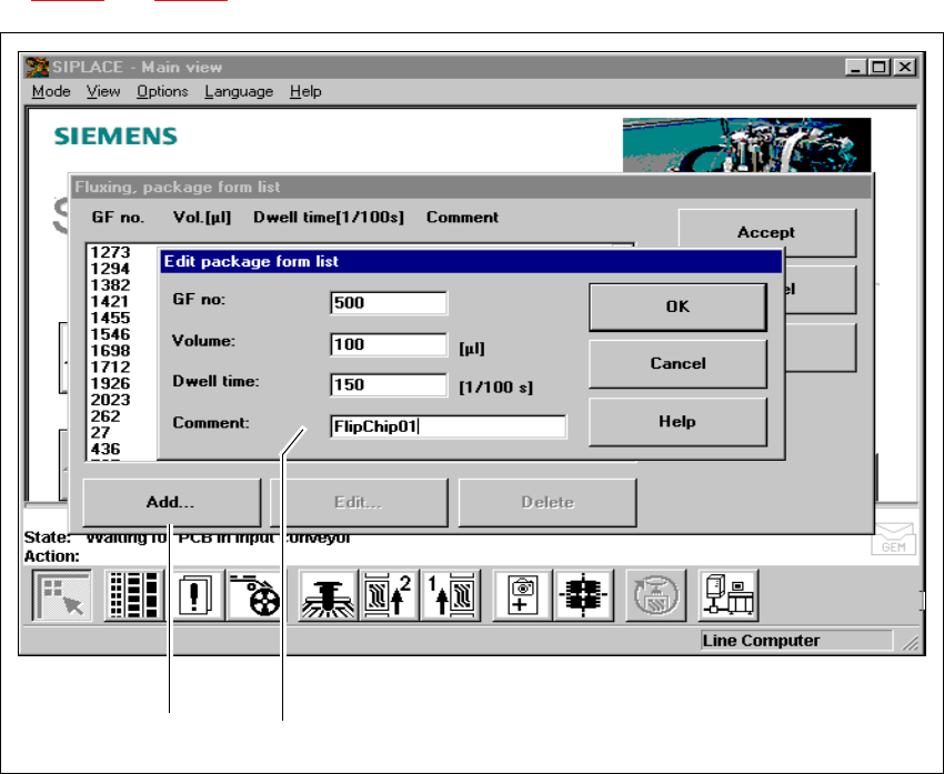 SIPLACE 80S-20/F4 User Manual 11 Station extensions /Hardware Software version SR.407.xx 01/2001 US Edition 11.9 Flux dispenser unit 513 1 1.9.7.2 Editing the package form list Å Se lect the “ Package form li st ” menu i…