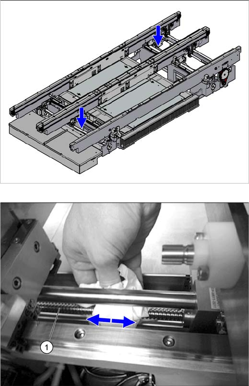 ► Reinigen Sie die Linearführungsschienen der