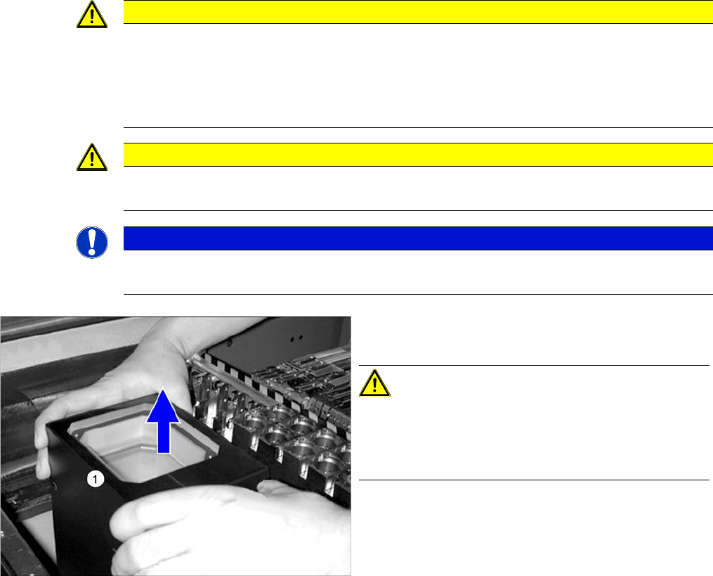 ► Docken Sie die BE-Wagen ab und fahren Sie diese aus der Maschine heraus.