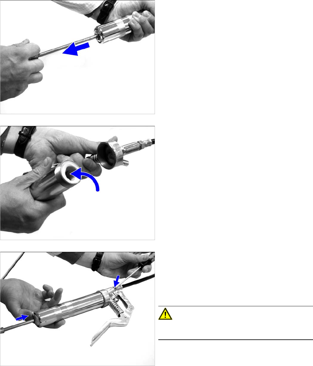 ► Ziehen Sie den Kolben der Fettpresse zurück. Die Ar
