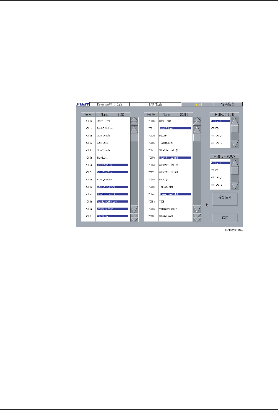 在 I/O 检查画面上,输入·输出信号的状态可以在监视器上显示。另外,可以进行灯光或者