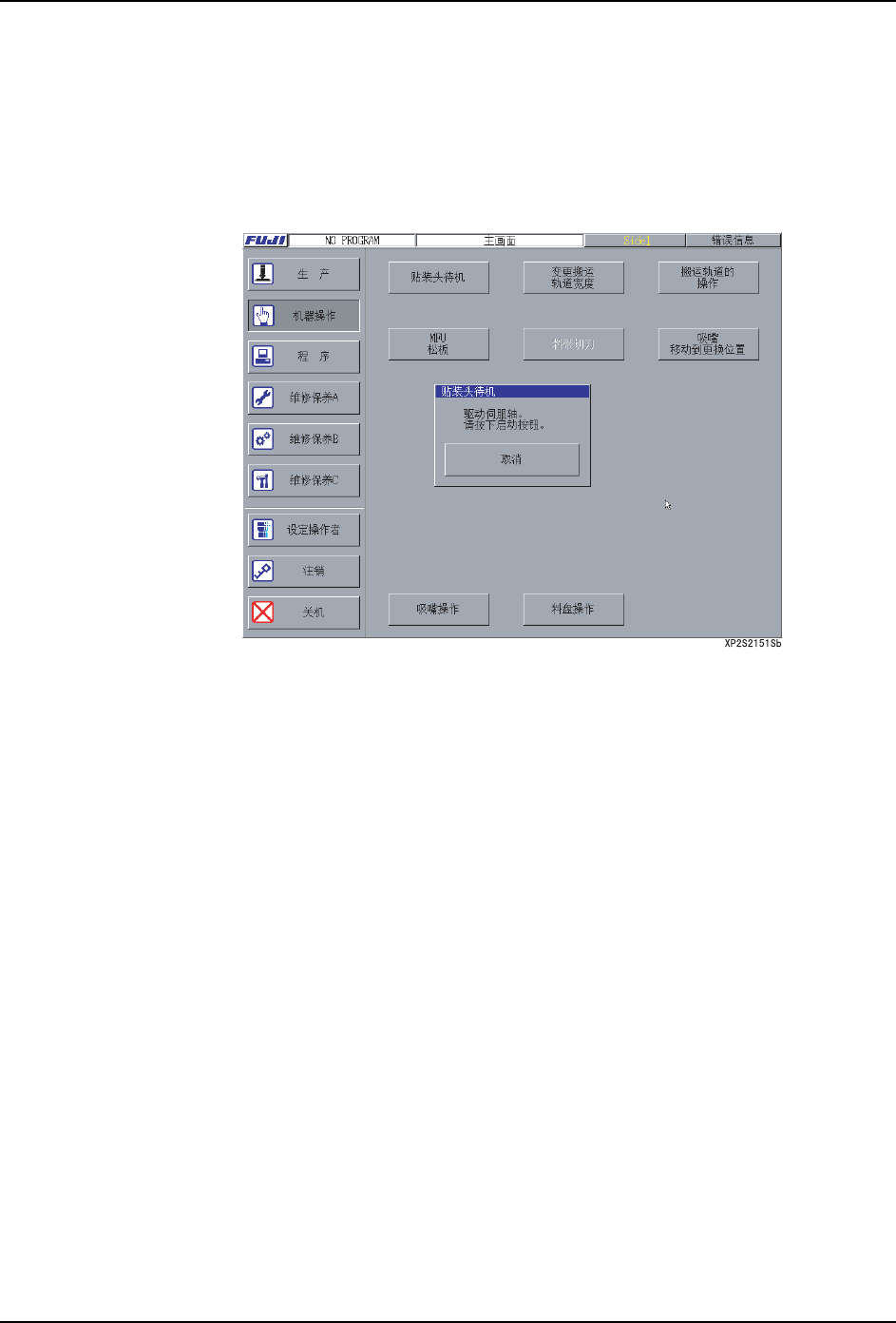1. 在[主画面]上选择[机器操作]、[贴装头待机]。