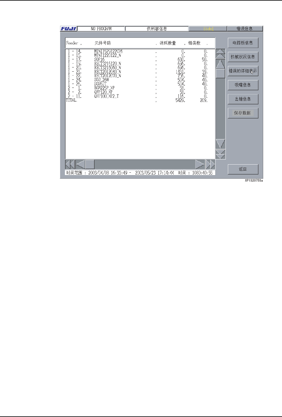 显示满足条件的记录数据或是选择的记录文件中注册的供料器。如果选择的记录文件是 NO-