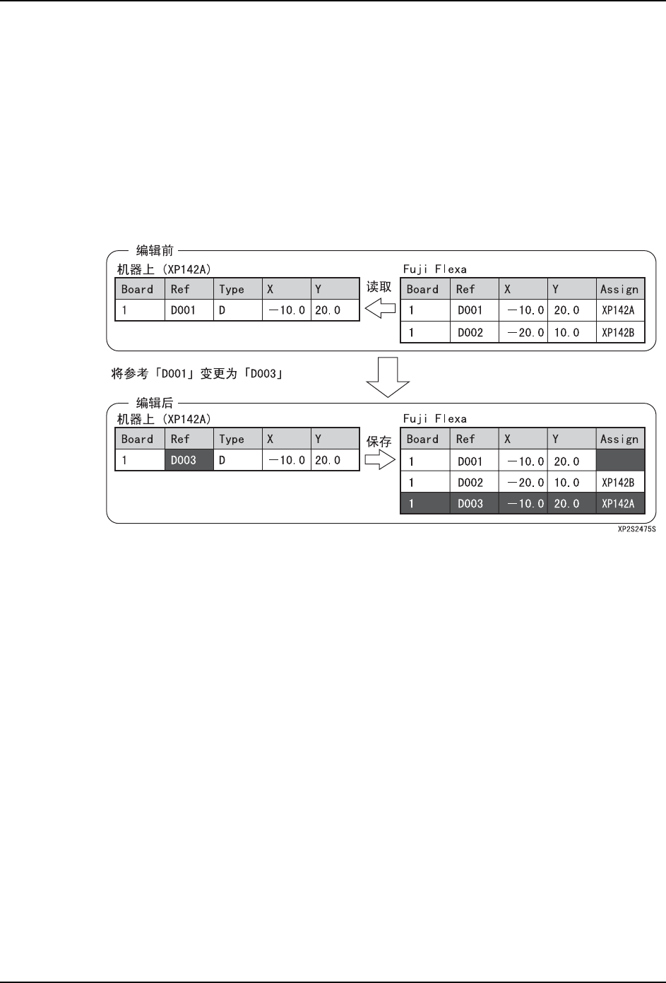 在 XP 机器上编辑元件 / 定位点数据后,在 Fuji Flexa 上保存数据时,根据固有值 「_