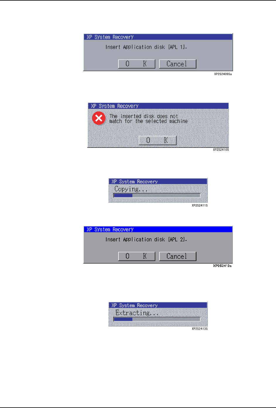 ( 应用盘 APL2) 时,显示错误信息对话框。当安装了正确的软盘时,显示出进展对话框,开