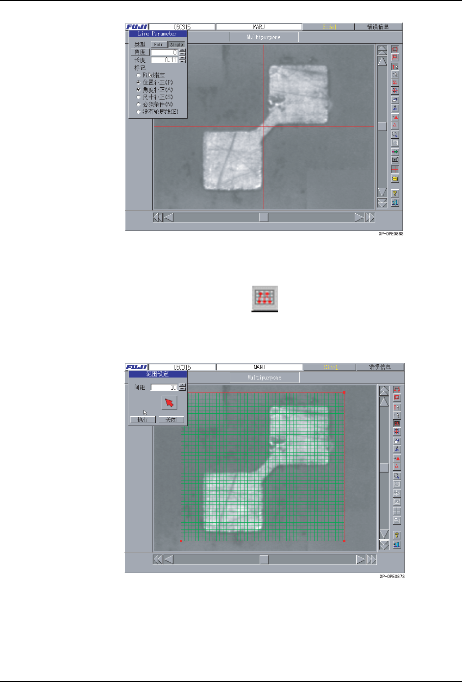 作成的间距在格子内检测出明暗的轮廓线后,对于一个格子生成一条查找线。间距的间隔用