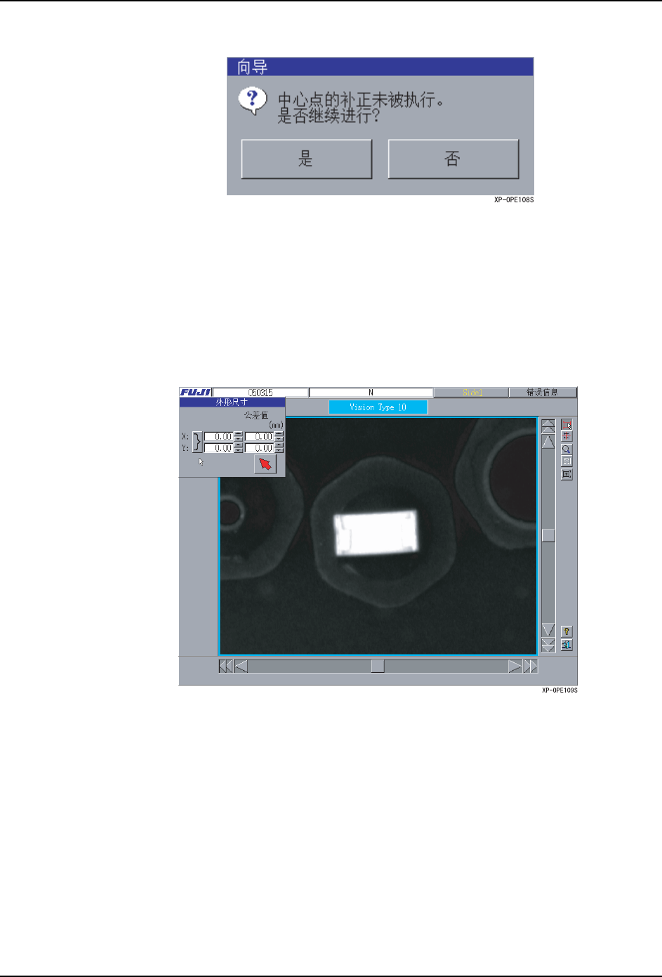 SYS-XP243-4.0S 5. MDW/PDW XP-242E/243E 系统手册 301 12.显示 [ 编辑范 围设定 ] 对话框 按下光标键后,拖动鼠标指定要 编辑的范围。按下 [ 下一步 ] 按键后,所指定的范围的 影像被扩大。 13.显示出 [卡尺]对话框。 进行元件主体的中心补正。设定 方法有以下 4 种方法。 · 按下 [3 点指定]按键,指定元件轮廓的 3 点。 · 用鼠标拖动在画面上显示出的蓝 、绿色的卡尺线。 ·…
